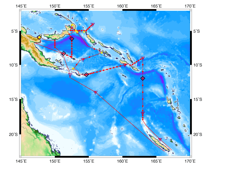 The Cruise Pandora took place in July-August 2012 in the Solomon Sea. It departed Noumea, New Caledonia, on June 28th and arrived Noumea on August 6th, with a call in Lae (PNG) on August 28th. Pandora is an interdisciplinary cruise allying physics and biogeochemistry; CTD-rosette; in situ pumps and mooring deployments. It occurred through collaborative agreements with PNG and Solomon Scientists and Met services.